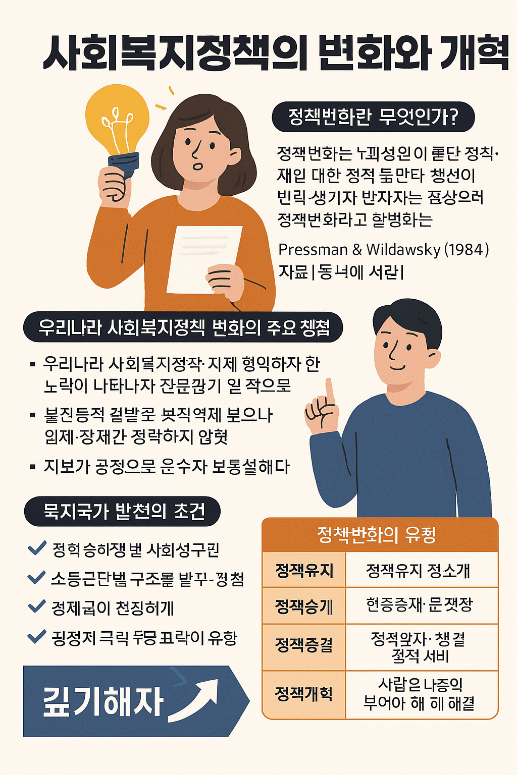 정책은 고정된 것이 아니라 시대의 흐름과 사회적 필요에 따라 끊임없이 변화하고 개혁되어야 합니다. 특히 사회복지정책은 국민의 삶을 뒷받침하는 최후의 안전망이기에, 변화를 두려워하지 않고 유연하게 대응하는 자세가 필요합니다.